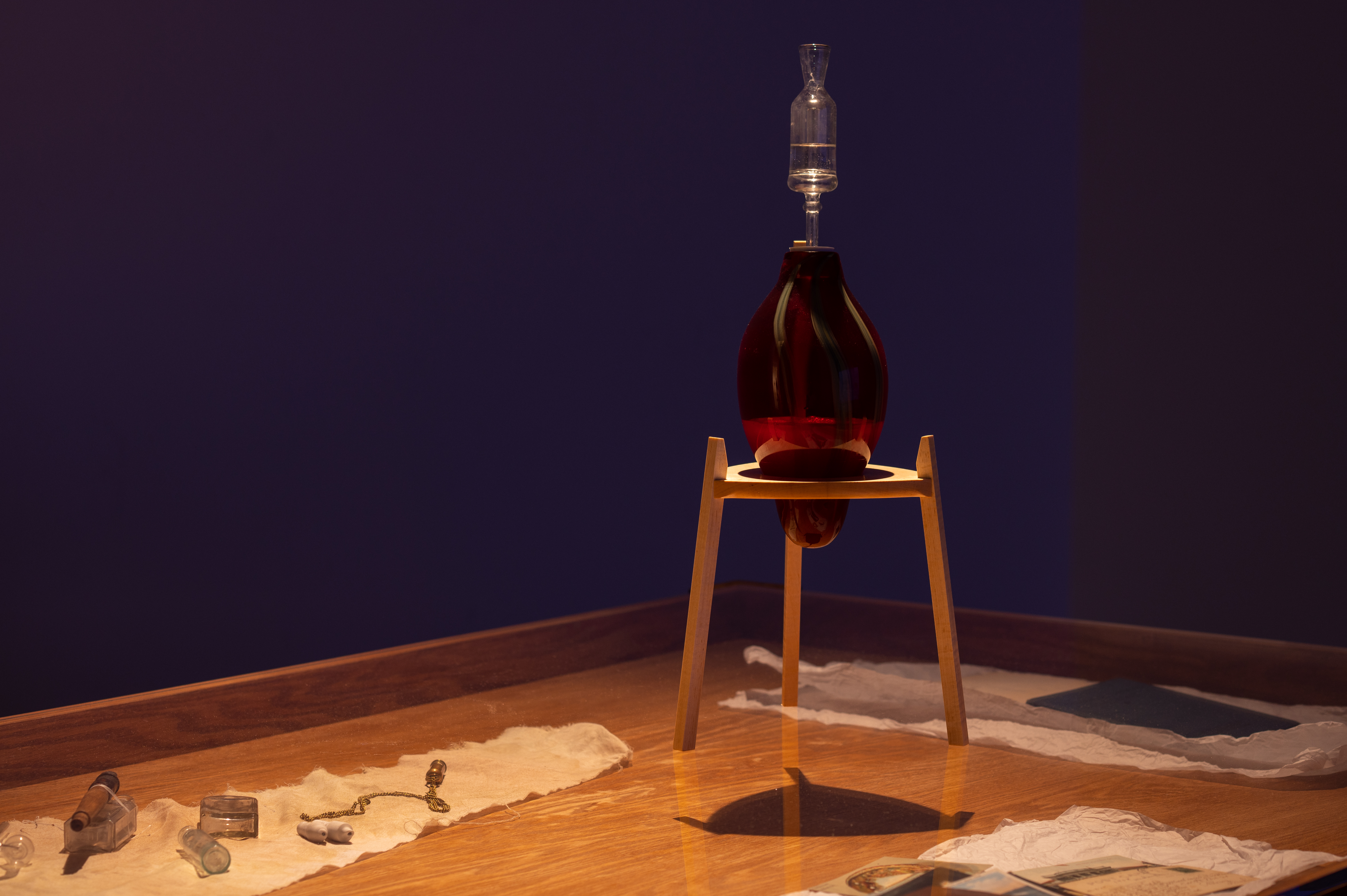 Created at the UCLA graduate art studios, Neptune’s Closet is a suite of artifacts on loan from archival collections, photographs, sound recordings, glass sculptures for saliva-seeded cider fermentation, and a film about the secret society and private natural history museum in Late Victorian Long Beach, California. The initiatory secret society was raided by the police in 1914, following an elaborate undercover sting operation that saw journalists and private investigators embedded in the clandestine organization.